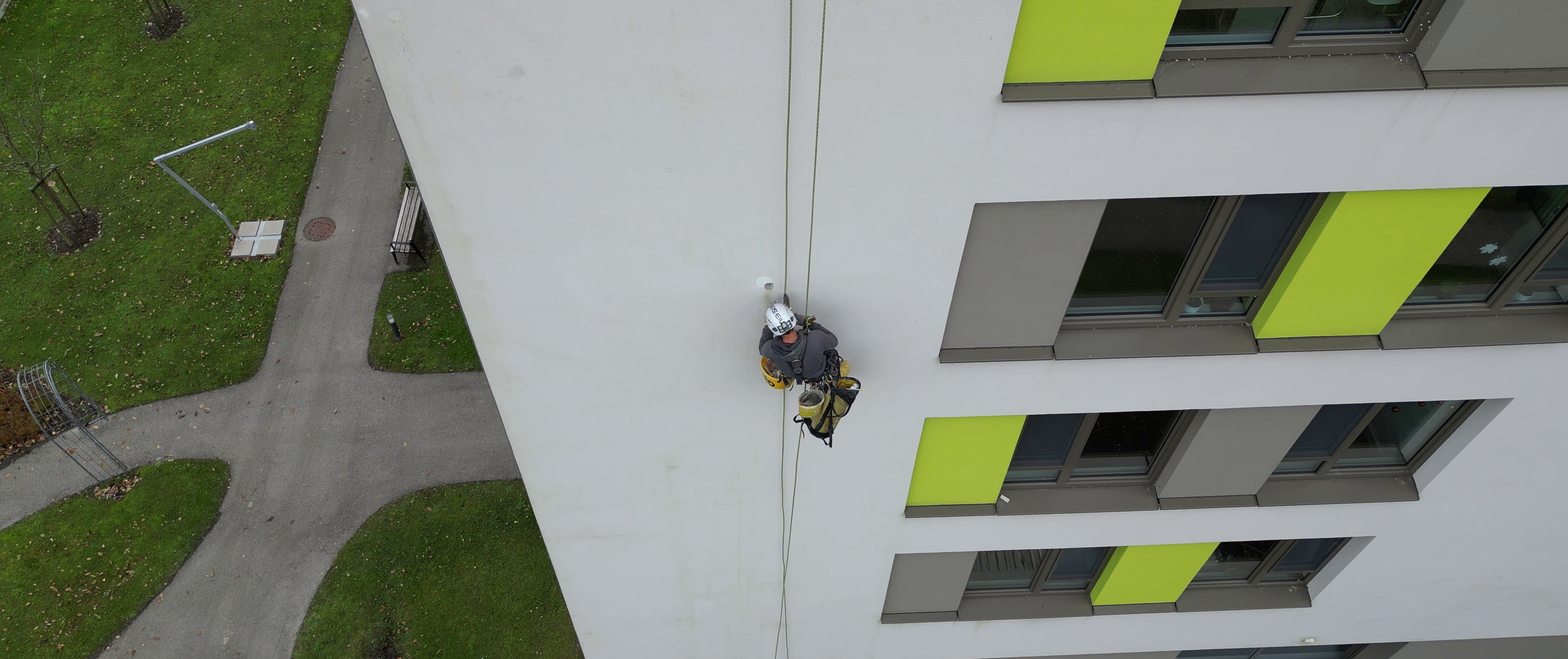 Auch wenn Lösungen in besonders gefinkelten Situationen auf den ersten Blick oft ausgeschlossen scheinen: Bei Zweiseil ist alles möglich. Denn Industrieklettern ist mehr als nur die fachgerechte Reinigung von zeitgenössischen Glasgebäuden. Wo herkömmliche Arbeitsweisen in Höhen, Tiefen oder Engen rasch an ihre Grenzen stoßen, werden die vielen Vorteile unserer Industriekletterer sichtbar. Es gibt heutzutage Anforderungen, die sogar nur von Industriekletterern umgesetzt werden können, aber auch solche, die einfacher zu bewältigen sind bzw. irgendwo dazwischen liegen. Unsere vielfältigen Einsatzmöglichkeiten erstrecken sich daher von Wohngebäuden über historische Bauwerke bis hin zu großen Industrie- und Produktionsbetrieben mit Fertigungslinien. Wir haben Erfahrung mit verschiedensten Objekten wie Windkraftanlagen, Silos, Einrichtungen der Lebensmittelindustrie sowie Burgen, Kirchen, Türmen, Masten und Antennen. Daher ist für uns kein Projekt zu klein oder zu groß.